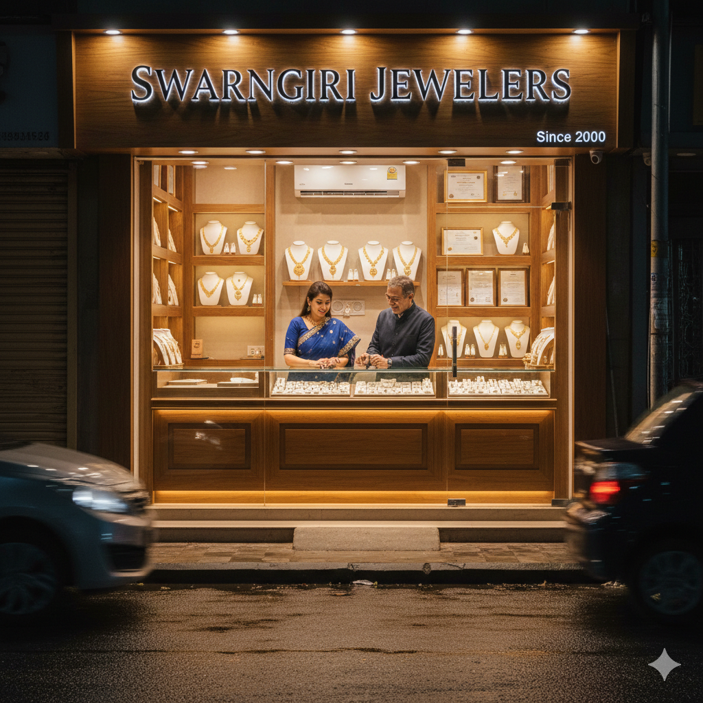 At Swarngiri Jewellers, we believe luxury is not just seen but felt. From transparent practices to personalised service, we strive to offer an exceptional experience—helping our customers celebrate life’s most meaningful moments with confidence, pride, and lasting value.